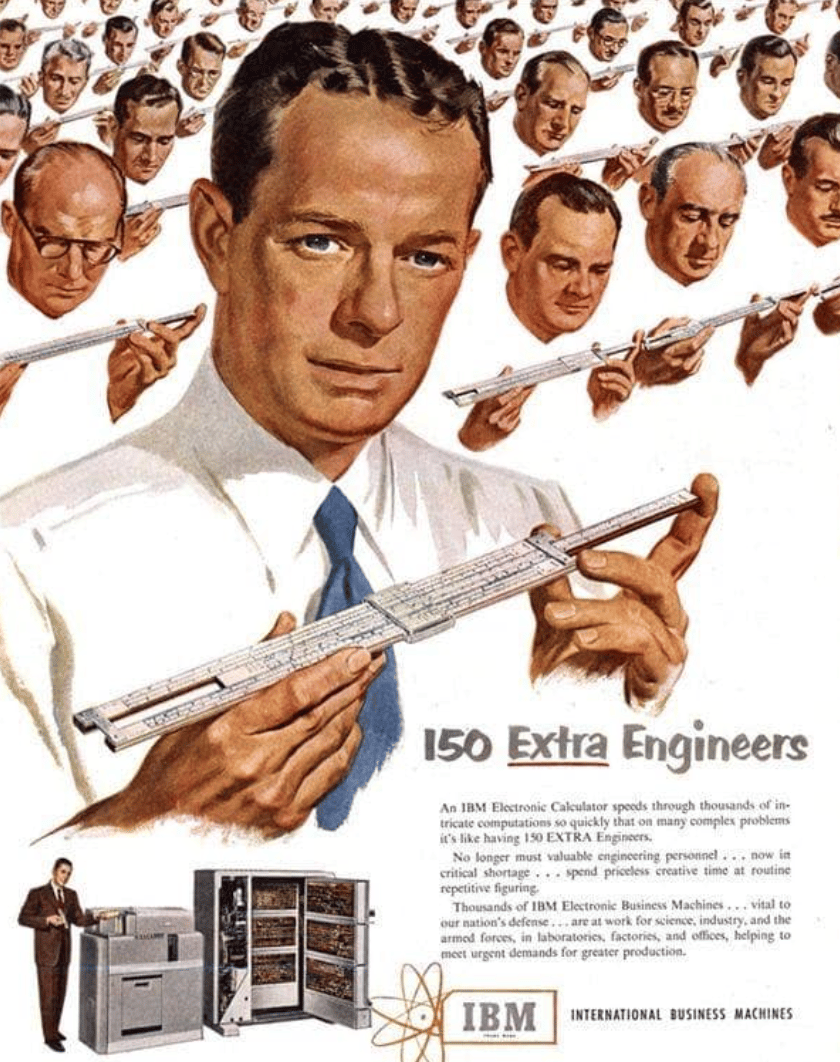 Back in the 1950s, IBM had this great ad for their (refrigerator-sized) electronic calculators, touting the idea that buying one was as powerful as hiring 150 extra engineers.